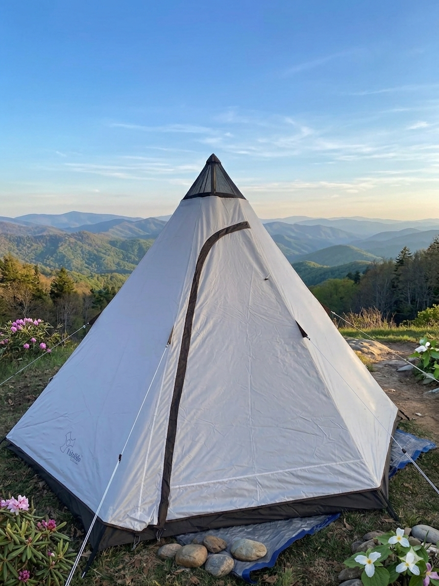 This teepee‑style tent offers a unique and eye‑catching design, complete with a rain cap at the top that resembles a top hat. Inside, you’ll find generous space for a comfortable stay, and the full‑length bottom zipper allows for excellent airflow when needed. For added versatility, the entire bottom section can be unzipped to transform the tent into an open‑air canopy, giving you multiple setup options in one well‑crafted design